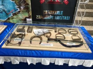 İslahiye Kaymakamlığı girişinde ziyarete açılan “Gezici Çanakkale Müzesi”, savaşın izlerini taşıyan bin bini aşkın eserle İslahiyelileri duygusal bir yolculuğa çıkarıyor.