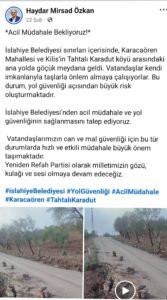İslahiye Belediyesi’ne Teşekkür: Özkan’ın Çağrısı Karşılık Buldu