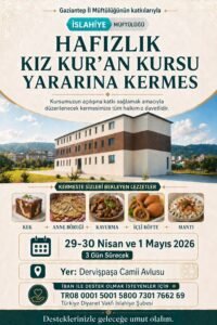 Gaziantep İl Müftülüğü’nün katkıları ve İslahiye İlçe Müftülüğü’nün koordinesinde, bölgedeki manevi eğitimin önemli bir parçası olacak Hafızlık Kız Kur’an Kursu’nun açılışına destek sağlamak amacıyla geniş kapsamlı bir kermes düzenleniyor. “Desteklerinizle geleceğe umut olalım” sloganıyla yola çıkılan etkinlik, üç gün boyunca hayırseverleri bir araya getirecek.