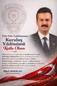 Türk Polis Teşkilatı’nın kuruluş yıl dönümü dolayısıyla bir kutlama mesajı yayımlayan Polis Derneği Başkanı Bilal Erdoğan, emniyet mensuplarının vatan savunması ve toplum huzuru için üstlendiği kritik role dikkat çekti.